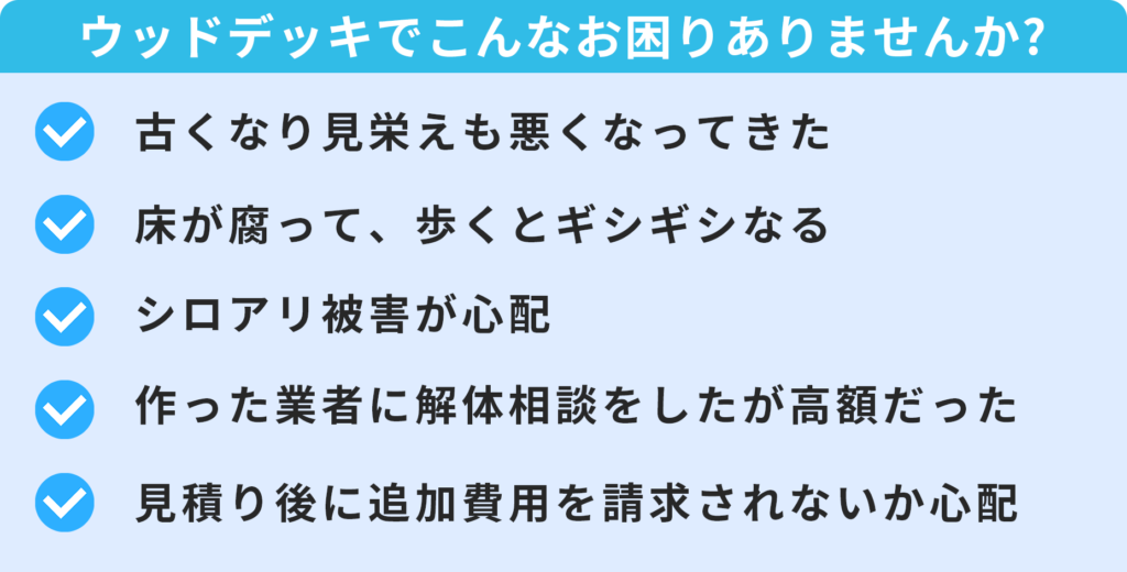 「お家を守る!ウッドデッキ撤去プラン」の流れ